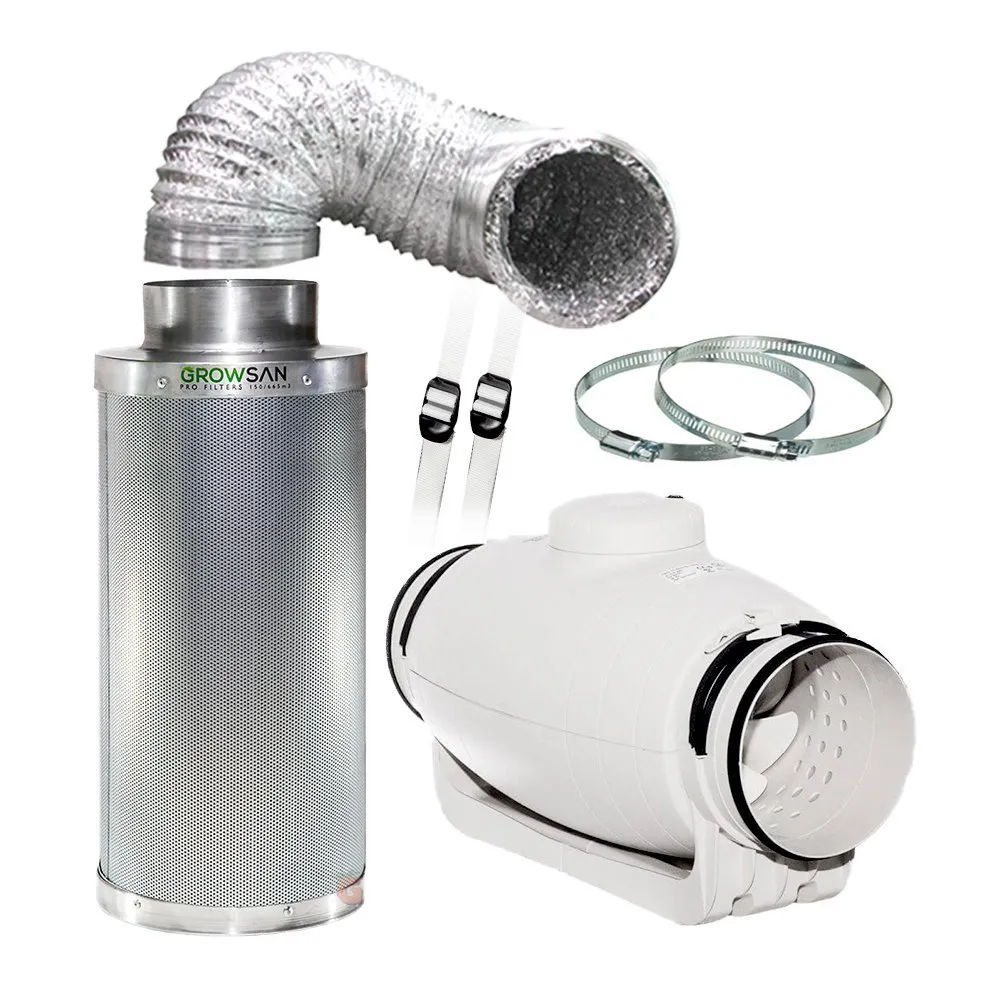 معرفی و تجهیزات پکیج فیلتر کربن گروسان مناسب محیط 665 متر مکعب 665m3 Growsan Carbon Filter Silent Fan Set