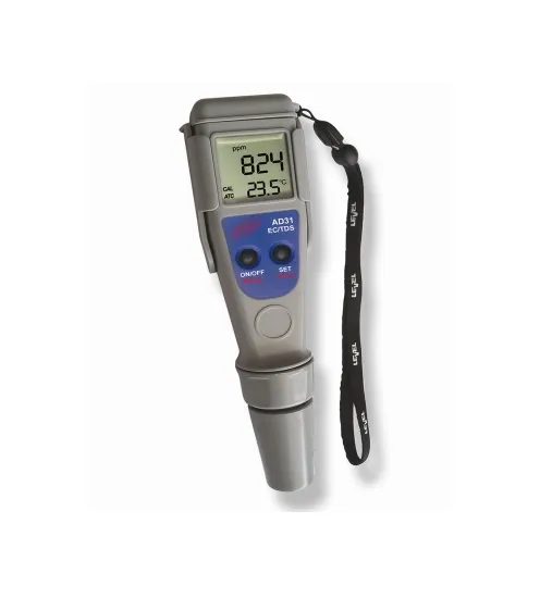 دستگاه EC+TDS متر قلمی ضد آب آدوا مدل ADWA AD31، یک تستر بسیار مناسب و باکیفیت برای اندازه گیری همزمان مقدار هدایت الکتریکی محلول و مقدار TDS یا ترکیبات کل حل شده در محلول می باشد که محصول اورجینال کمپانی آدوا مجارستانی است که می تواند مقدار هدایت الکتریکی محلول غذایی یا محلول خاک را در محدوده 00.0mS/cm – 3999 mS/cm (میلی زیمنس بر سانتی متر _ میلی موس بر سانتی متر) و با دقت 0.01mS/cm اندازه گیری کند...