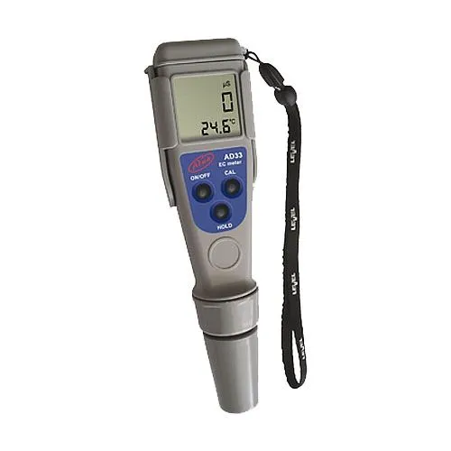 هدایت الکتریکی سنج قلمی ضد آب آدوا مدل ADWA AD33، یک دستگاه حرفهای و دقیق برای اندازهگیری هدایت الکتریکی (EC)، TDS و دمای محلولها و خاک است. این EC متر قلمی ضد آب ADWA AD33 ساخت کمپانی ADWA رومانی-مجارستان بوده و طراحی مقاوم و ضد آبی با استاندارد حفاظتی IP67 دارد. این دستگاه برای نظارت بر میزان نمک، میزان ترکیبات معدنی محلول در آب و خاک و تحلیل کیفیت محلولهای غذایی گیاهان کاربرد دارد.