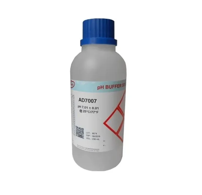 محلول بافر پی اچ 7 آدوا ADWA AD7007 یکی از محلولهای استاندارد و با کیفیت کمپانی آدوا مجارستان است که برای کالیبراسیون دقیق PH متر طراحی شده است. این بافر با ترکیب دقیق دی سدیم هیدروژن فسفات و پتاسیم دی هیدروژن فسفات، ثبات PH را در محلولها حفظ میکند و از تغییرات ناگهانی اسیدیته جلوگیری مینماید.