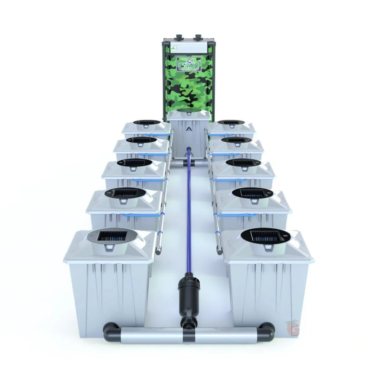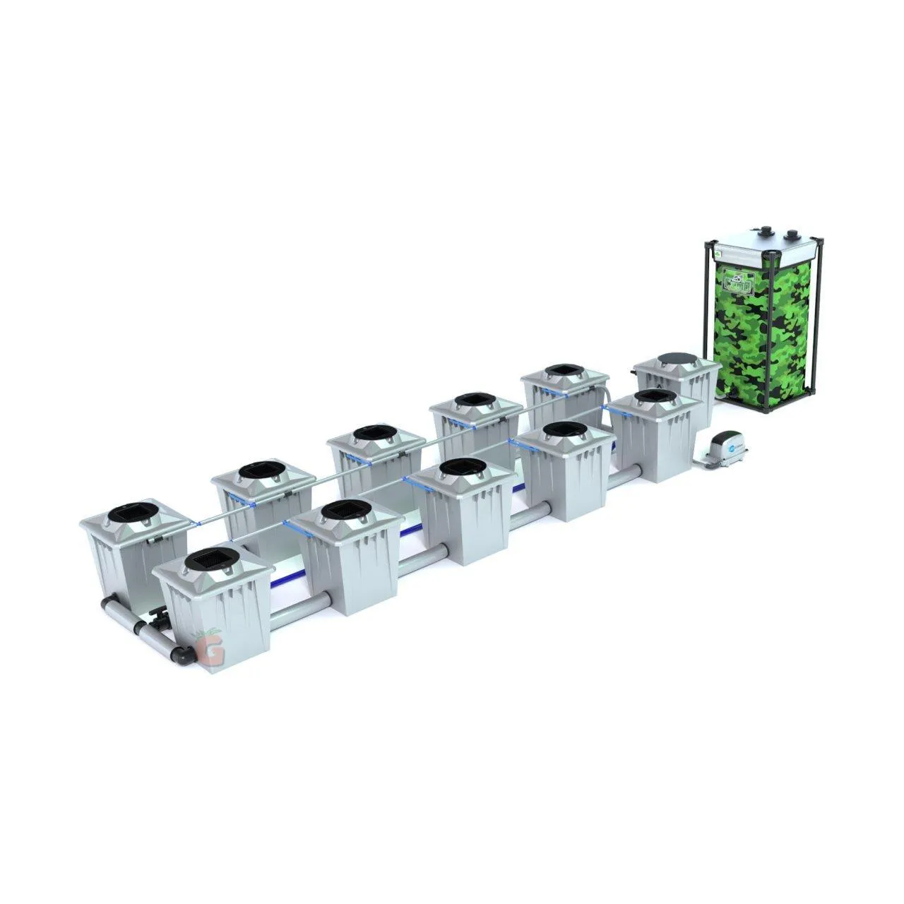 این سیستم شامل مجموعاً 10 گلدان فردی با حجم 20 لیتر برای گیاهان شما است، همچنین یک گلدان مادری با حجم بزرگتر نیز وجود دارد. این گلدان مادری نقش کلیدی در تامین تامین یکپارچه محلول غذایی برای تمام گیاهان دارد و رشد یکنواخت در سراسر سیستم را ترویج میکند.