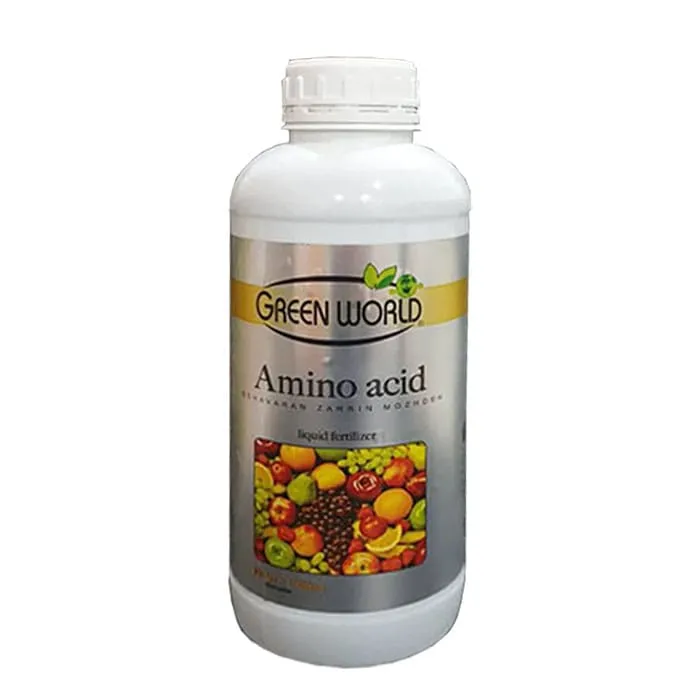 کود مایع آمینو اسید Green World یک کود مایع عالی حاوی درصد بالای نیتروژن و آمینواسیدهای ضروری گیاه است که با فرمولاسیون قوی به گونه ای طراحی شده است که به راحتی جذب گیاه می شود و موجب رشد چشم گیر گیاهان می گردد. کود مایع آمینو اسید Green World با تقویت دیواره سلولی گیاه مقاومت گیاه را در تنش ها و استرس های محیطی نظیر دمای بالا، شوری، سرمای زیاد و کم آبی بالا میبرد. و همچنین میزان جذب عناصر ریز مغذی را در گیاهان افزایش می دهد.