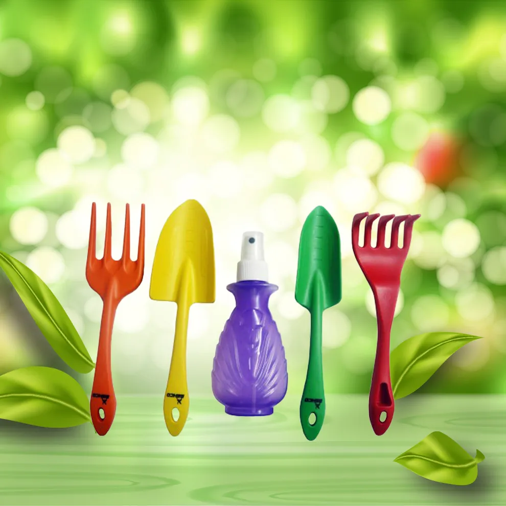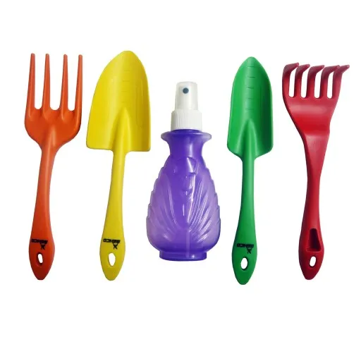 این مجموعه شامل پنج ابزار ضروری برای باغبانی سبک است که هر کدام کاربرد خاصی دارند و با جنس پلاستیک فشرده ABS و طراحی ارگونومیک ساخته شدهاند: