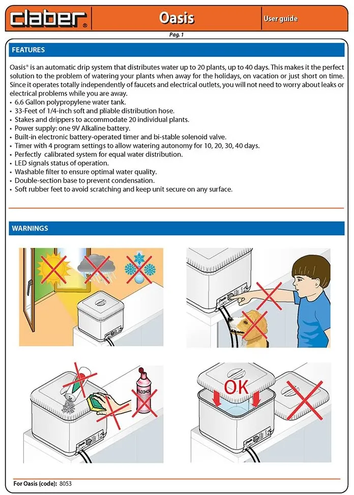 معرفی اجزاء دستگاه آبیاری اتوماتیک گیاهان آپارتمانی Claber ایتالیا