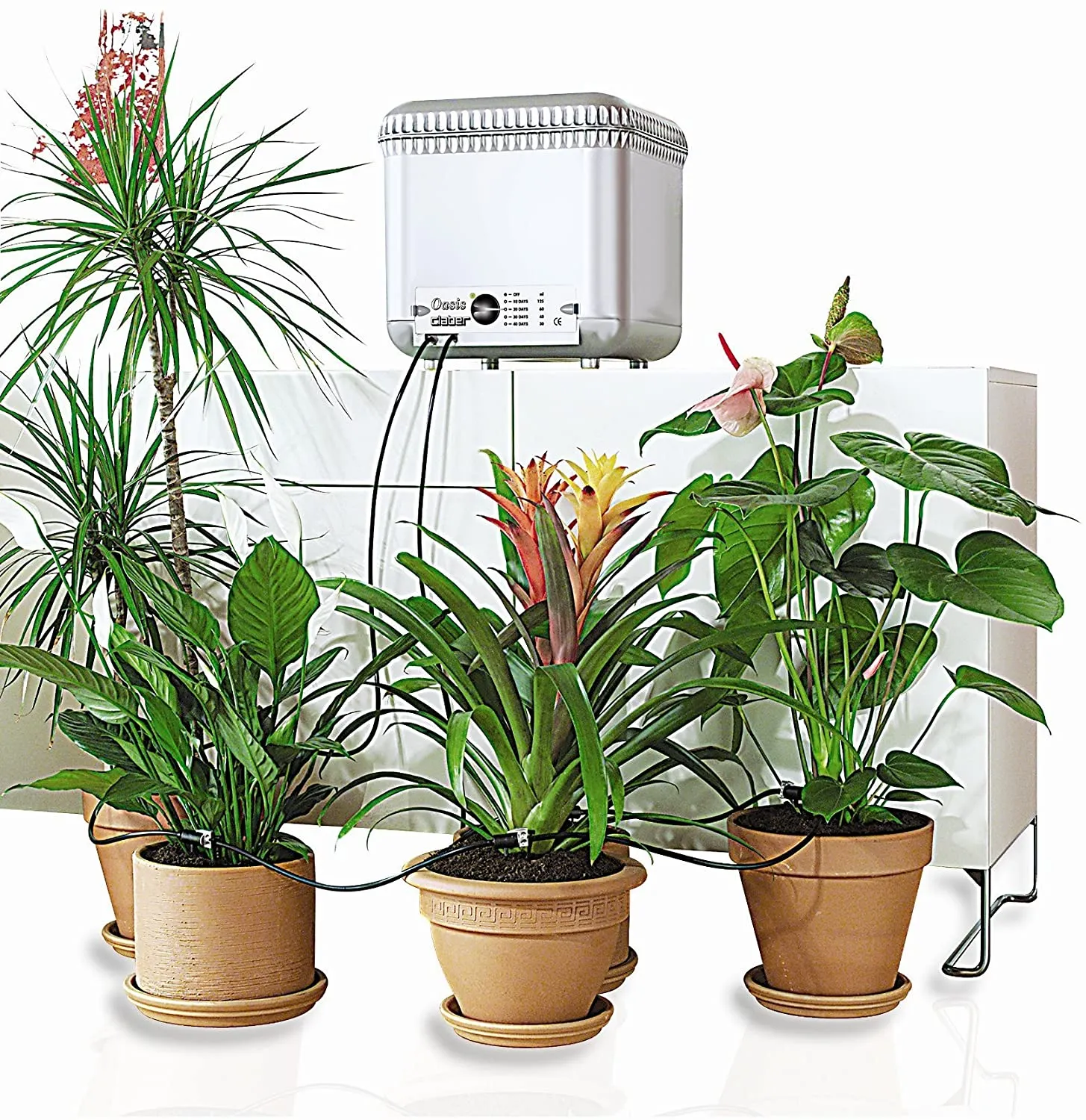 دستگاه آبیاری اتوماتیک گیاهان آپارتمانی Claber ایتالیا شامل اجزای متنوعی است که با هماهنگی کامل عملکردی بدون نقص ارائه میدهند. این اجزاء شامل: