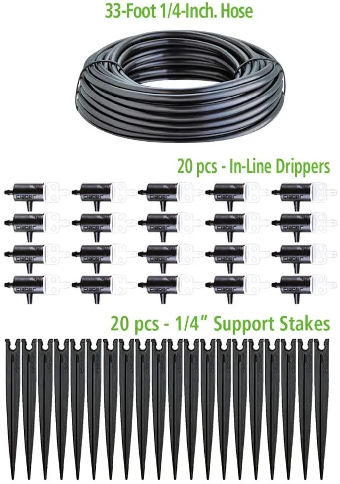 - 20 عدد نازل آبیاری قطرهای برای هر گلدان به صورت جداگانه.