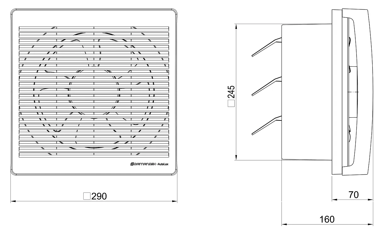 مشخصات فنی هواکش خانگی 20 سانتی متری دمپر اتوماتیک اتولوکس دمنده مدل VAL-20C4S