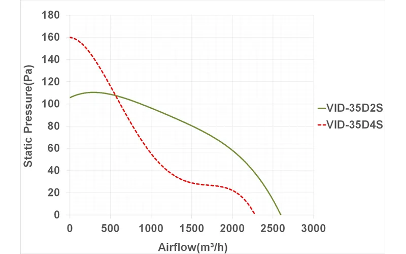 هواکش صنعتی سبک فلزی 35 سانتی متری دمنده مدل VID-35D4S با قطر پروانه 35 سانتیمتر و حجم هوادهی 2300 مترمکعب بر ساعت طراحی شده است. این ویژگی موجب میشود دستگاه بتواند در مدت زمان کوتاهی حجم زیادی از هوا را جابجا کند. توان موتور این محصول 130 وات بوده و با ولتاژ 220 ولت کار میکند. از سوی دیگر شدت صدای آن تنها 63 دسیبل است که در مقایسه با بسیاری از هواکشهای صنعتی در همین ابعاد، عملکرد کمصداتری دارد.