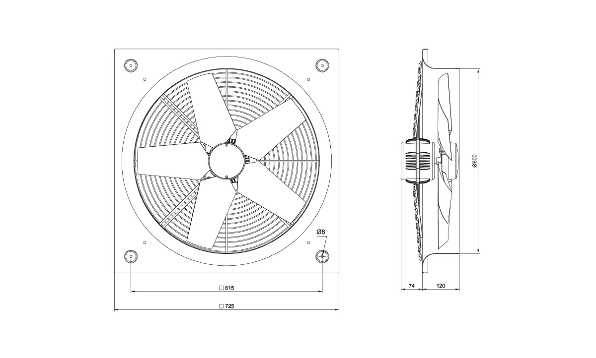 - کاربرد: تخلیه هوا، دود، گرما و تهویه محیطهای بزرگ