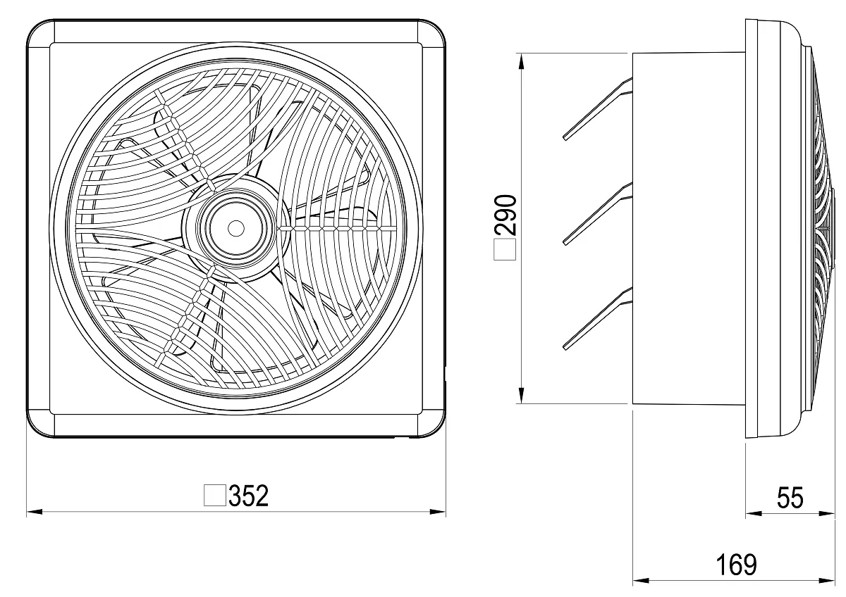 ویژگیهای کلیدی هواکش خانگی 25 سانتی متری با دمپر و کلید دستی لوکس دمنده مدل VSL-25C4Sقطر پروانه: 25 سانتی متر