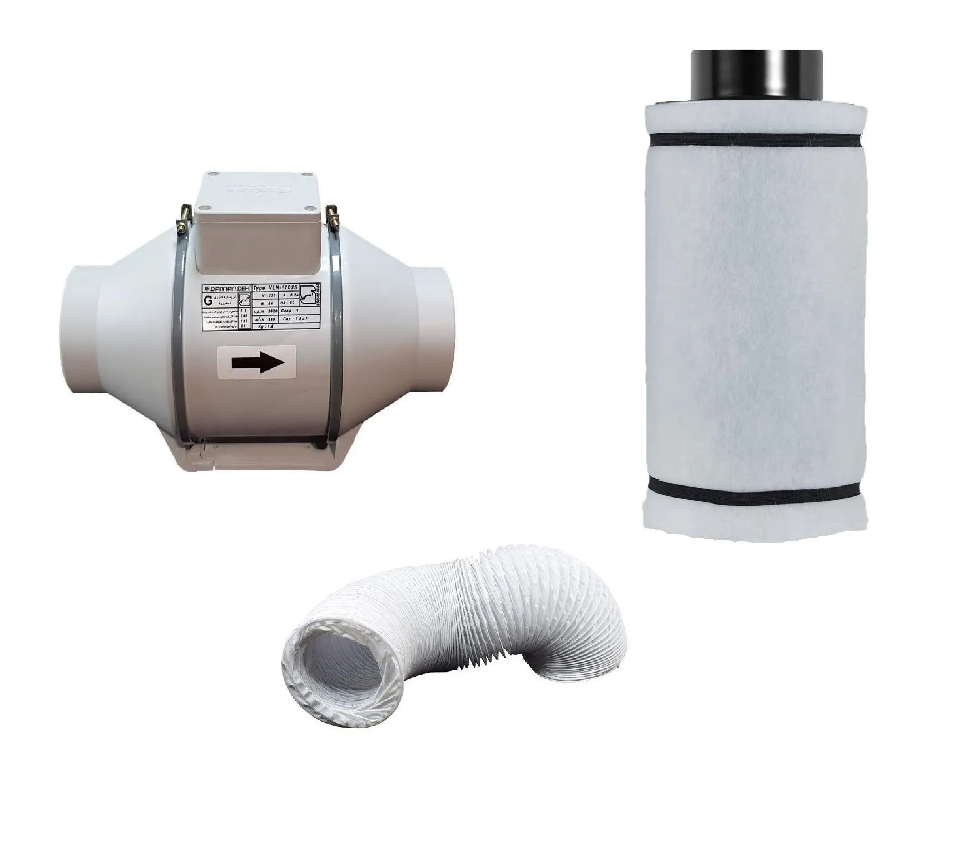 پکیج فیلتر کربن 60 سانتی دهانه 15 بلک اوپس به همراه فن بین کانالی دمنده VLN-15C2S-HP (پر قدرت)