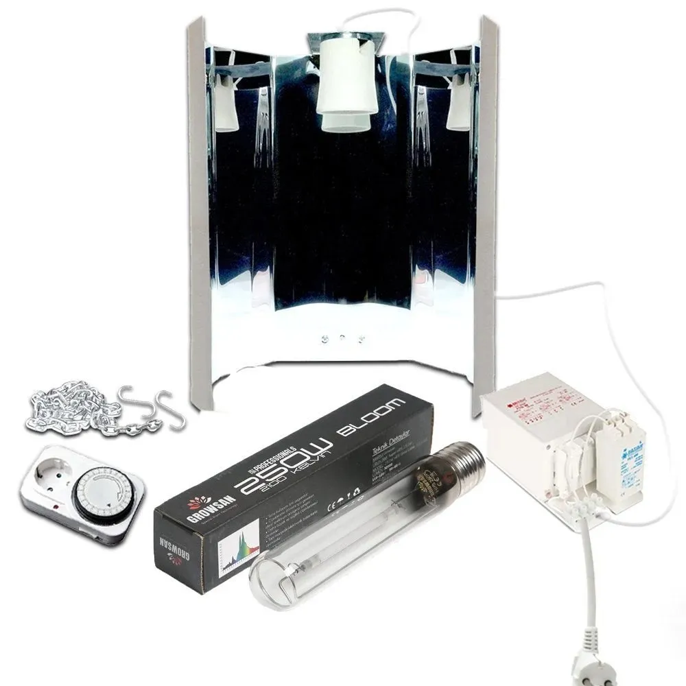 معرفی ست لامپ رشد گیاه 250 وات دوره رشد و گلدهی گروسان Growsan 250w SHP Set & Mirror Reflector