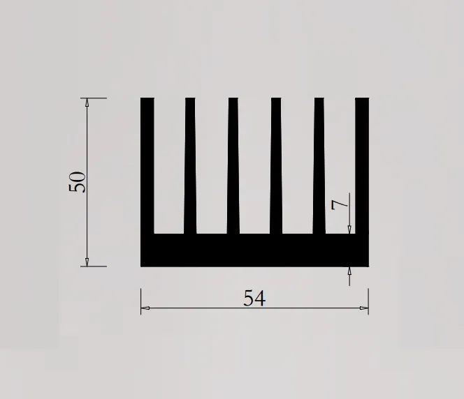 طراحی هیت سینک آلومینیومی عرض 5.4 سانتی متر شانه 5 سانتی متر (طول 1 متر) به نحوی است که بتواند بیشترین بازدهی حرارتی را با حداقل فضا ترکیب کند. شانههای بلند ۵ سانتیمتری باعث افزایش سطح تبادل حرارت و بهبود جریان هوا میشوند. این طراحی مناسب برای پروژههای صنعتی و نیمهصنعتی است که هم عملکرد بالا و هم نصب ساده مورد نیاز است.