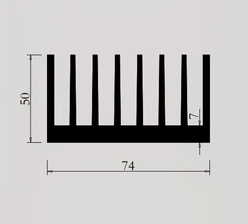 طراحی هیت سینک آلومینیومی عرض 7.4 سانتی متر شانه 5 سانتی متر (طول 1 متر) به گونهای انجام شده که عملکرد حرارتی بالا با نصب آسان ترکیب شود. شانههای ۵ سانتیمتری موجب افزایش سطح تبادل حرارت میشوند و نصب حتی در فضاهای محدود امکانپذیر است.