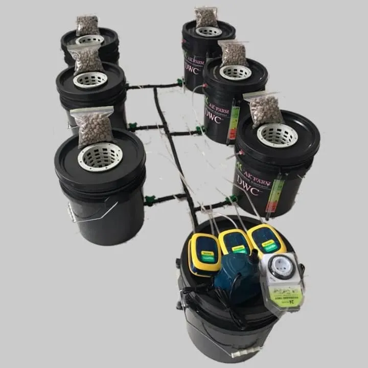 سیستم هیدروپونیک 6 سطله یک سیستم کاملا تخصصی و مبتنی بر روش کشت هیدروپونیک DWC است که برای پرورش سبزی و صیفی جات ،گیاهان زینتی و طرح های تحقیقاتی قابل استفاده است. سیستم هیدروپونیک 6 سطله، متشکل از 6 سطل ضخیم و آنتی UV است که از تابش نور خورشید به داخل سطل ها و ایجاد جلبک و باکتری های بیماری زا داخل آب و محلول غذایی جلوگیری میکند، همچنین هر کدام از این سطل ها 15 الی 20 لیتر گنجایش ذخیره محلول غذایی را دارند و لازم است که هر 15 الی 20 روز یکبار محلول آبیاری آن اصلاح و یا تعویض شود.