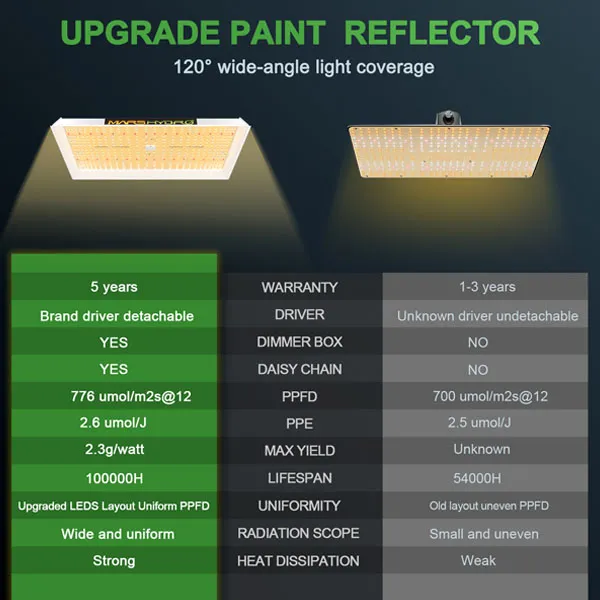خصوصیات فنی پروژکتور ال ای دی رشد گیاه مارس هایدرو تی اس دبلیو 2000 - MARS HYDRO TSW 2000 LED PLANT GROWING