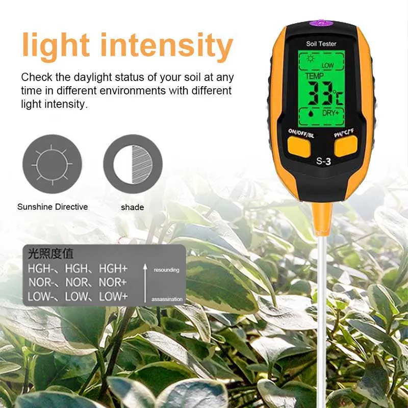 - دستگاه را روشن کرده و حالت اندازهگیری مورد نظر را انتخاب کنید (رطوبت، دما، pH، نور، شوری یا رطوبت هوا).