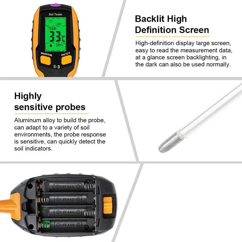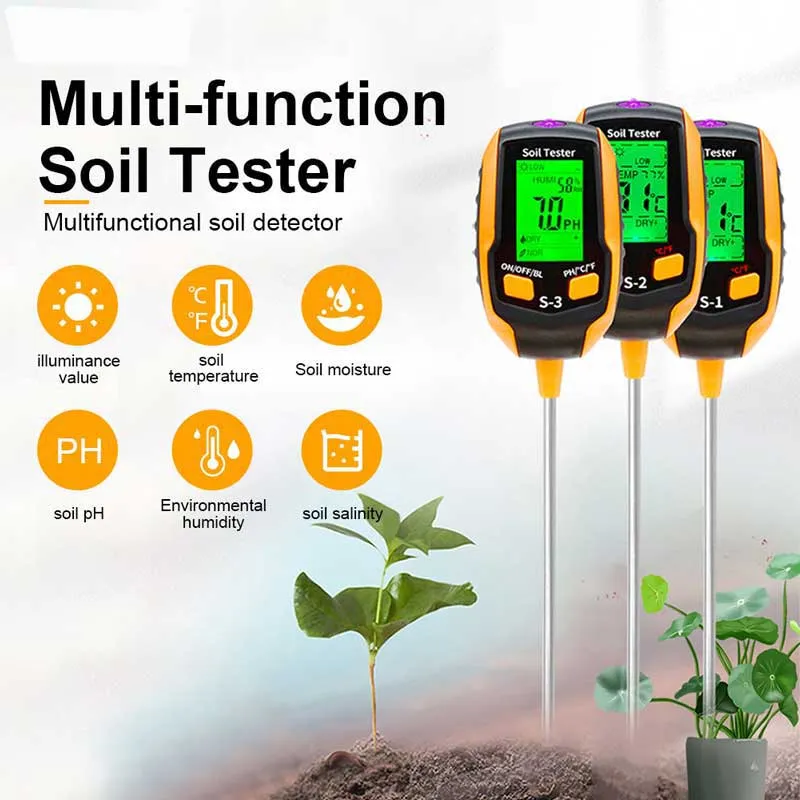 رطوبتسنج و pHسنج خاک ۶ در ۱ نِتپیل SN58 یک ابزار پیشرفته و چندمنظوره است که قابلیت اندازهگیری رطوبت خاک، نور محیط، دما، pH خاک، رطوبت محیط و شوری خاک را دارد. انرژی لازم برای کارکرد این دستگاه از طریق چهار عدد باتری AAA تأمین میشود و دارای نمایشگر LCD با نور پسزمینه است که خوانش دادهها را در روز یا شب آسان میکند.