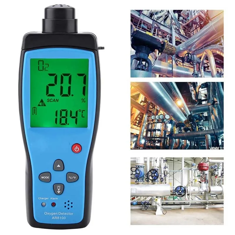 کمبود اکسیژن یا وجود گازهای خطرناک میتواند تهدید جدی برای سلامت انسان و محیط زیست باشد. اکسیژن متر مدل AR8100 به گونهای طراحی شده است که امکان تشخیص سریع سطح اکسیژن را فراهم میکند و با ارائه نتایج دقیق، اپراتورها و کارشناسان را قادر میسازد اقدامات ایمنی لازم را انجام دهند. این دستگاه در صنایع نفت و گاز، پتروشیمی، نیروگاهها، کارخانههای تولید مواد شیمیایی و آزمایشگاهها کاربرد فراوان دارد.