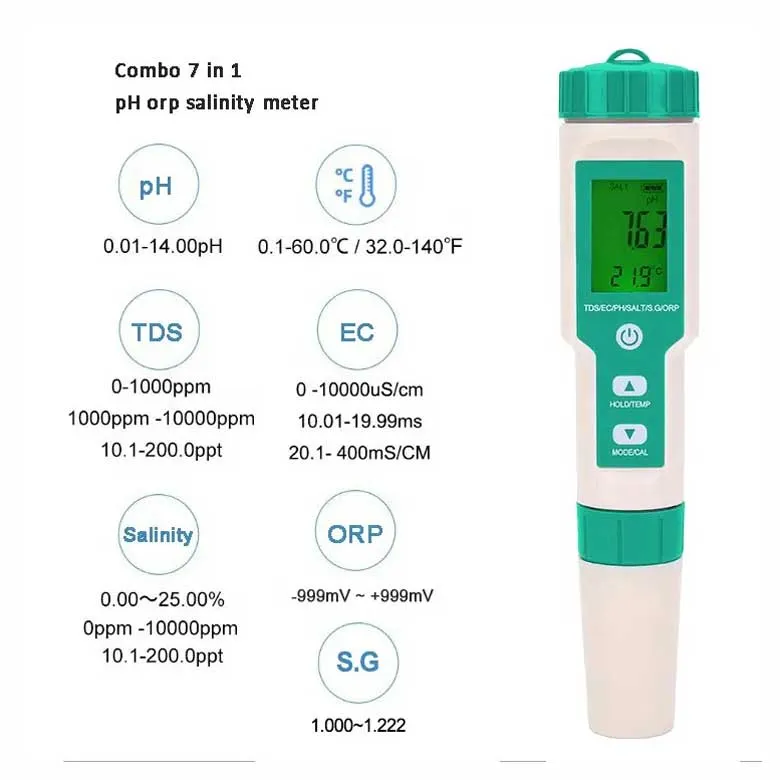 شوری آب یا محلول، یکی دیگر از پارامترهای حیاتی برای محیطهای کشاورزی و هیدروپونیک است. این PH متر توانایی اندازهگیری شوری را در بازههای 0-10000 ppt، 10.1-200.0 ppt و 0.01%-25.00% دارد. وضوح اندازهگیری شوری 1 ppm، 0.1 ppt و 0.01٪ است و دقت آن 2% FS برای بازه 0.01-5.00٪ و ±0.1٪ برای بازه 5.1-25.0٪ میباشد. این دقت بالا کمک میکند تا میزان شوری محلول یا آب مصرفی برای گیاهان، گلها و محصولات کشاورزی بهینه شود و از آسیب ناشی از شوری زیاد یا کم جلوگیری گردد.