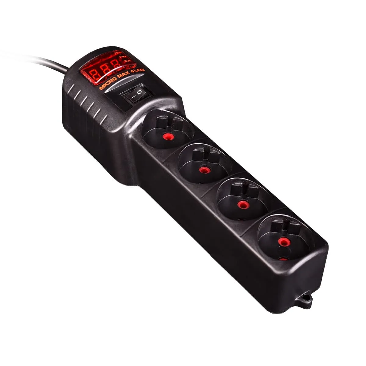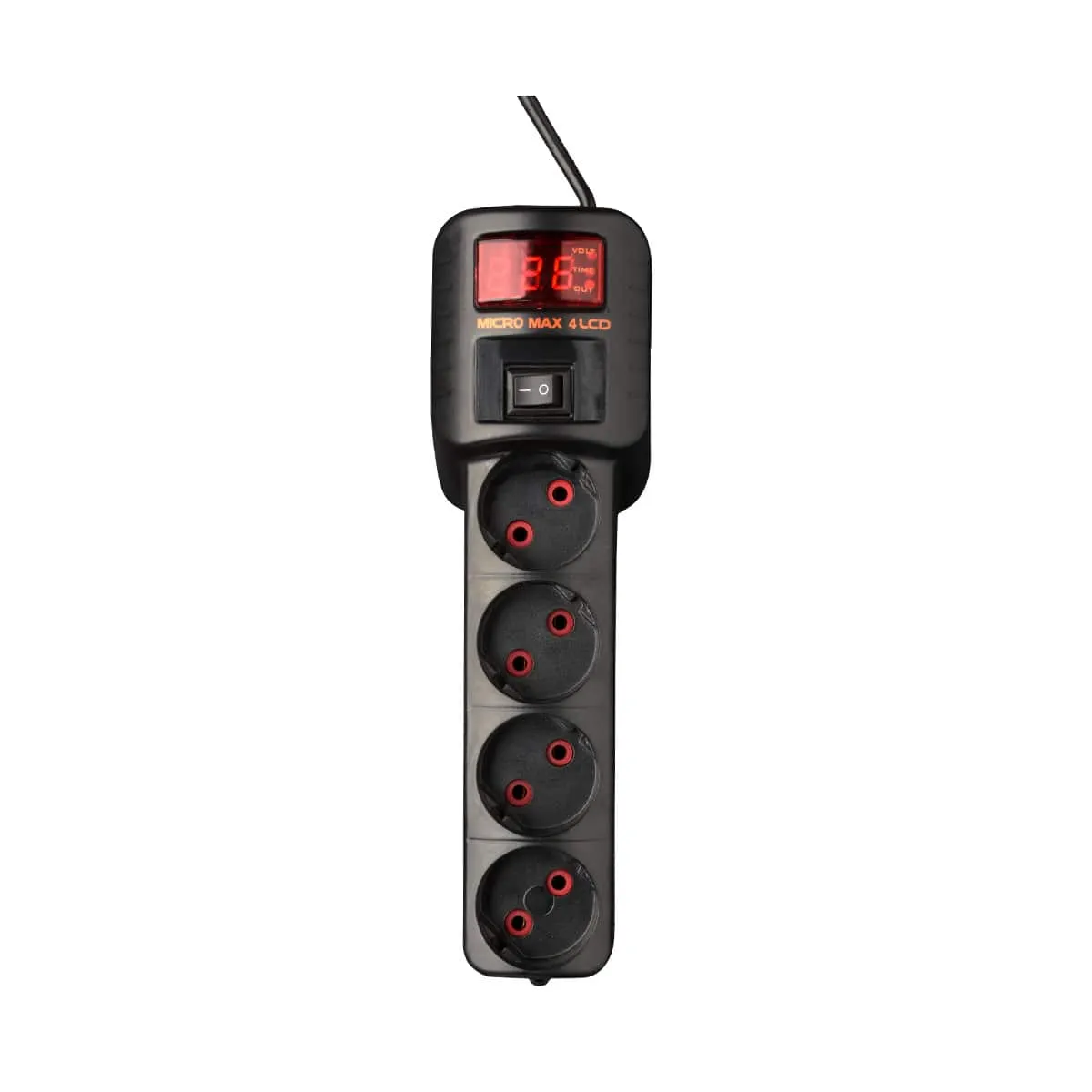 ابعاد و طراحی محافظ برق دیجیتال لوازم خانگی چهار خانه مشکی میکرومکس مدل 4LD-X