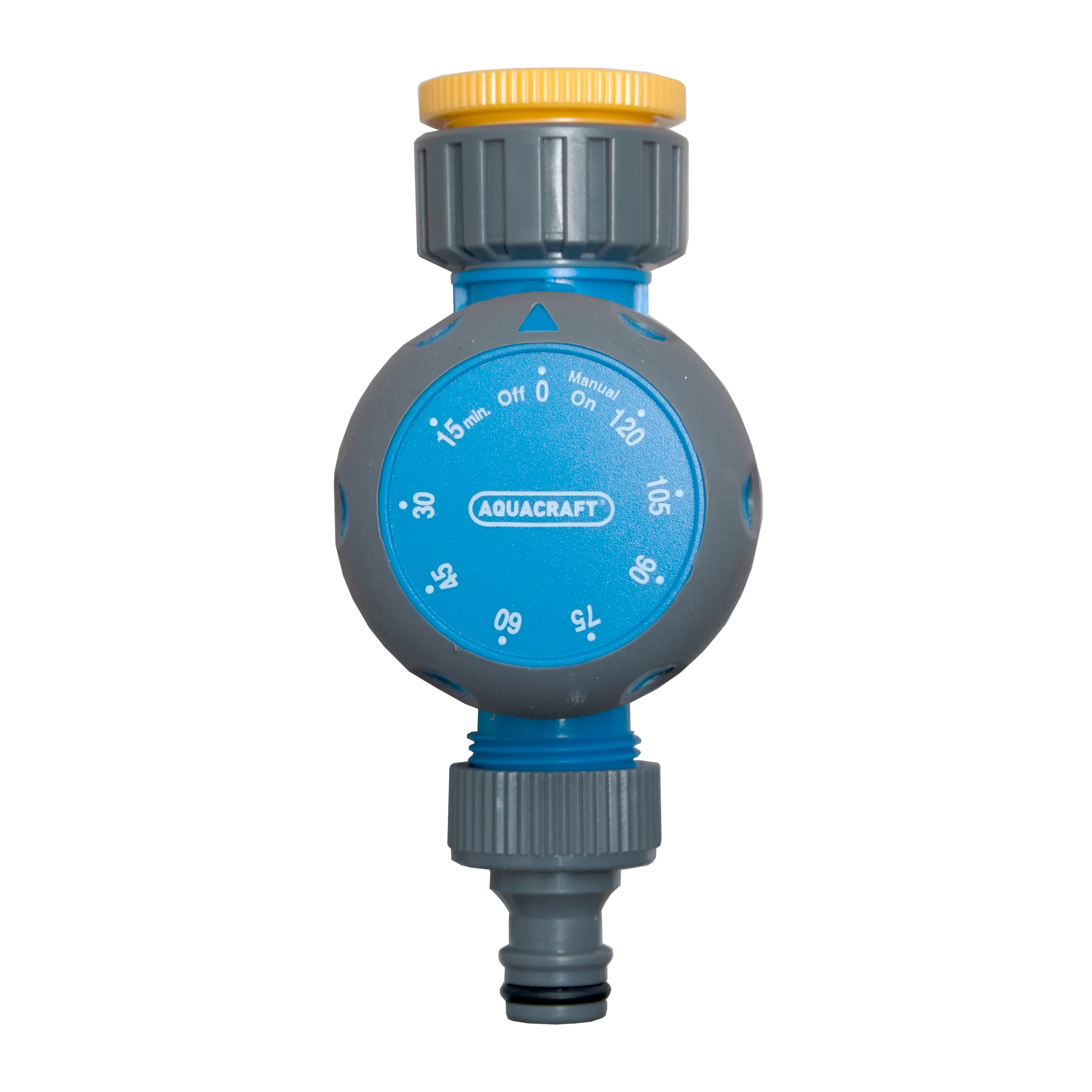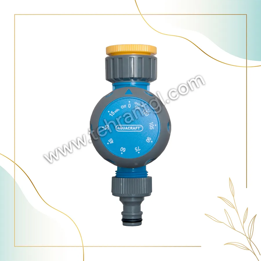 تایمر های آبیاری ابزاری جهت اتوماتیک کردن سیستم آبیاری هستند. که انواع دیجیتال و مکانیکی این محصول در بازار موجود می باشد. شیر تایمردار آکوا کرفت یک شیر تایمردار مکانیکی ست که به علت تحمل فشار و آبدهی پایین مناسب استفاده در اتاق های کشت و باغچه و گلدان است. این تایمر بدون نیاز به باطری و فقط با یک دور چرخاندن کوک شده و شروع به آبیاری تا مدت زمان تعیین شده توسط کاربر می کند. مدت زمان قابل تنظیم برای شیر تایمردار آکوا کرفت جهت آبیاری از 1 دقیقه تا 120 دقیقه می باشد که پس از اتمام مدت زمان تعیین شده مجددا باید تنظیم گردد.