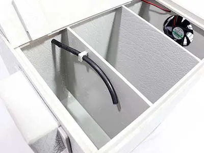 بدنه این رطوبت ساز از جنس مقاوم ABS ساخته شده است و در برابر ضربه، خوردگی و پوسیدگی بسیار مقاوم است. وزن دستگاه ۴ کیلوگرم و ابعاد آن ۳۳×۲۶×۲۴ سانتیمتر است که امکان جابجایی آسان و نصب سریع در محیطهای مختلف را فراهم میکند. ساختار سبک و مستحکم دستگاه آن را برای استفاده طولانی مدت و محیطهای کوچک ایدهآل میسازد.