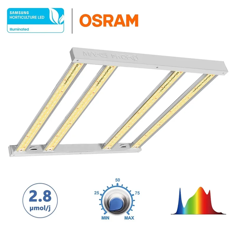 پروژکتور ال ای دی رشد گیاه مارس هایدرو اف سی 3000 از چیپ اسرام ساخته شده است. این چیپ ها طیف کامل نور خورشید را برای گیاه تامین می کنند. اگر به طیف فول اسپکتروم نگاهی کنیم متوجه میشیم که طیف نور آبی در فرکانسی در حدود 460 نانومتر قرار می گیرد و نور قرمز در طیف 660 نانومتر قرار دارد. برای رشد انواع نشاء و برگ دهی آن به نور آبی نیاز خواهید داشت. در دوران گلدهی نیز گیاهان به طیف رنگی قرمز نیاز خواهند داشت. هنگامی که می گویم یک لامپ رشد گیاه فول اسپکتروم است به این معنا است که تمامی طیف نوری خورشید را برای گیاهان فراهم می کند. این نورها شامل نورهای سفید یخی و کلوین دار در حدود 5000 تا 7000 کلوین و نور زرد متمایل به نارنجی 2200 تا 3500 کلیون را تولید می کنند. همچنین نورهای UV و IR که تاثیر مستقیم بر برگ دهی، رشد، گلدهی، قارچ کشی و ضد عفونی دارند نیز توسط این پروژکتور رشد گیاه Mars Hydro مدل FC3000 تامین می شود.