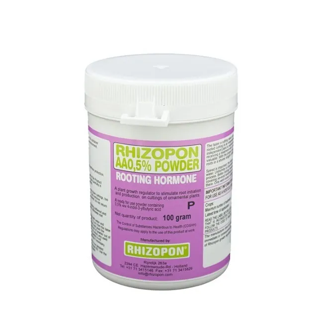 هورمون ریشه زایی رایزوپون بنفش 0.5 درصد محصولی با کیفیت از شرکت معروف Rhizopon در شهر آمستردام هلند می باشد. این شرکت با بیش از 75 سال سابقه تولید در زمینه محصولات تنظیم کننده رشد گیاه محصولی را با نام Rhizopon AA 0.5% Rooting Hormones تولید کرده است که حاوی 0.5% ایندولیل بوتیریک اسید (IBA) می باشد. هورمون ریشه زایی رایزوپون بنفش 0.5 درصد با ساختاری پودری شکل جهت تسریع در روند رشد ریشه در قلمه های خشبی و نیمه خشبی تولید شده است. این محصول در بسته بندی با وزن 500 گرم توسط شرکت تهران گرولایت عرضه می شود.