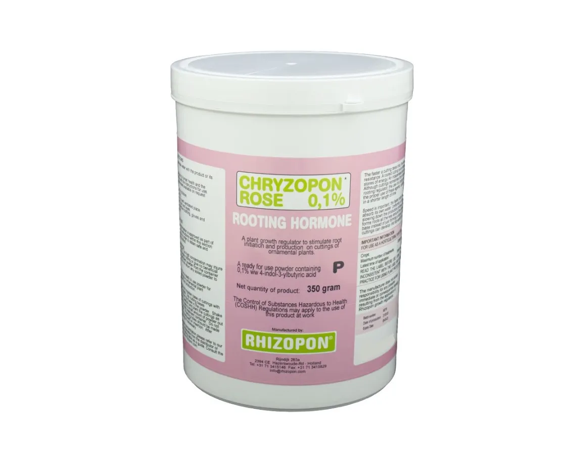 هورمون ریشه زایی کریزوپون صورتی 0.1 درصد محصول بسیار با کیفیت کمپانی مشهور هلندی به نام Rhizopon می باشد.هورمون ریشه زایی کریزوپون صورتی 0.1 درصد با هدف ایجاد سریع ریشه و همچنین رشد ریشه هایی با ساختار یکنواخت و با کیفیت و قوی در انواع قلمه های علفی ساخته شده است. در ترکیب Chryzopon Rose 0.1 Rooting Hormones از 0.1 درصد IBA یا ایندولیل بوتیریک اسید استفاده شده است. این محصول در بسته بندی با وزن 350 گرم هم اکنون در سایت تهران گرولایت در دسترس می باشد.