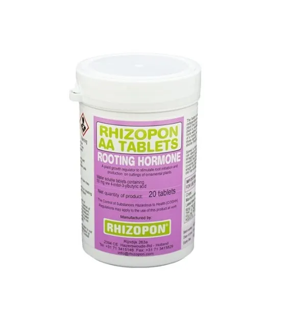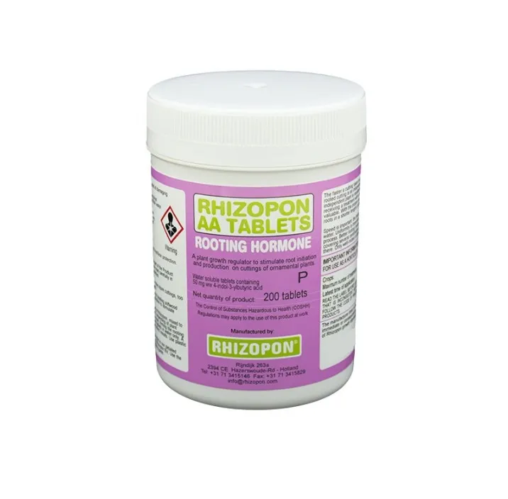 هورمون ریشه زایی قرص رایزوپون محصول با کبفبت کمپانی معروف هلندی Rhizopon می باشد. این هورمون ریشه زایی به صورت قرص های محلول در آب می باشد که هم بصورت محلول پاشی و هم با روش خیساندن ساقه قلمه در محلول قابل استفاده است.هر قرص Rhizopon AA Tablets Rooting Hormones حاوی 50 میلی گرم IBA یا ایندولیل بوتیریک اسید می باشد که نوعی هورمون اکسین است که جهت تحریک سلول گیاه به ریشه زنی در این ترکیب استفاده شده است. از هورمون ریشه زایی قرص رایزوپون برای قلمه گیری در گیاهان علفی، خشبی (چوبی) و نیمه خشبی می توان استفاده کرد.