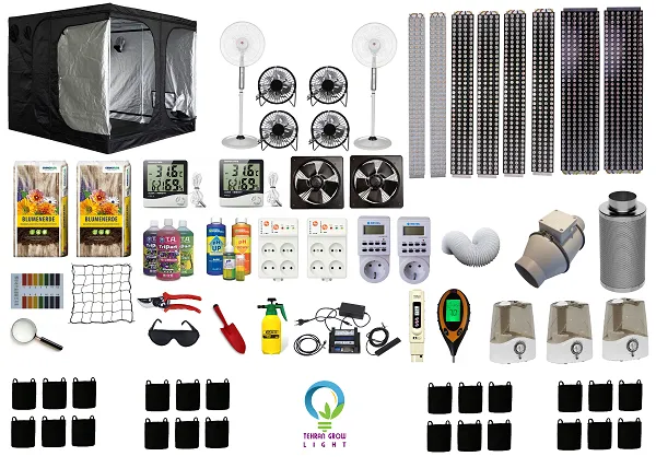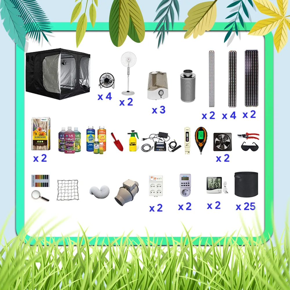 پکیج کامل کاشت تا برداشت 25 گلدان یک پکیج تخصصی رشد گیاه است که توسط کارشناسان و متخصصین مجموعه ی تهران گرولایت آنالیز و گردآوری شده است. این پکیج کامل کاشت تا برداشت 25 گلدان شامل : یک عدد اتاق رشد با ابعاد 4.5 در 4.5 در ارتفاع 2 متر فول رفلکتور به همراه 2 پنل 750 وات خطی و 4 پنل 430 وات و 2 پنل 320 وات خطی به عنوان تامین کنندگان نور مورد نیاز گیاه در این اتاق رشد هستند. بعلاوه 3 بطری نیم لیتری کود 3 دوره اصلی ژنرال فلورا و 525 لیتر خاک میکس هلندی . 25 عدد گلدان پارچه ای بسیار با کیفیت25 لیتری ، 1 عدد بیلچه ،1 عدد سم پاش ، 1 عدد قیچی باغبانی ، 2 عدد عینک یو وی ، 1 کنترلر اتاق رشد، 1 سختی سنج آب ،2 عدد تایمر دیجیتال ،1 عدد PH متر4 کاره خاک و آب ، 2 عدد رطوبت _ دماسنج دیجیتال ، 3 عدد دستگاه رطوبت ساز سرد 4 لیتری ، 1 عدد فیلتر کربن 40 سانتی و1 عدد جت فن دور بالا ، 2 عدد محافظ برق ، 2 عدد فن 25 در 25 فلزی دمنده ، 2 عدد پنکه ایستاده و 4عدد پنکه گیره ای ،و 100 میلی لیتر بافرکاهنده و یک عدد توری Net Grow ، یک عدد ذره بین ، ا عدد تستر PH آب ،1 بسته لوله فیلتر کربن می باشد.