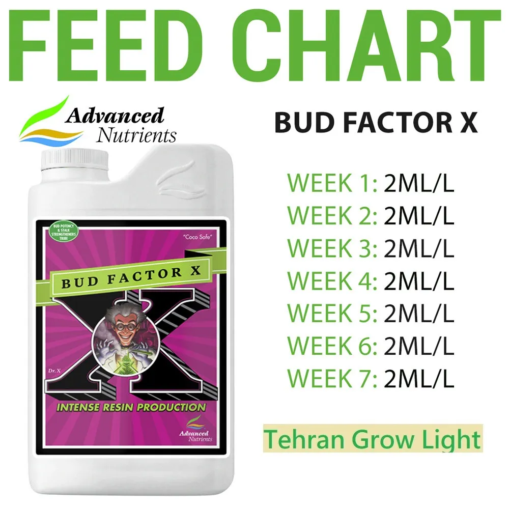 کود باد فکتور ایکس ادونس ( Advanced bud factor X)؛ یک کود بسیار غنی و با کیفیت، متشکل از روغن ها و صمغ ها و ترکیبات غذایی گیاه برای تولید میوه و محصول باکیفیت و افزایش عطر و طعم میوه و محصولات زراعی می باشد و از تولیدات مرغوب کمپانی بزرگ آمریکایی Advanced Nutrients، می باشد.
