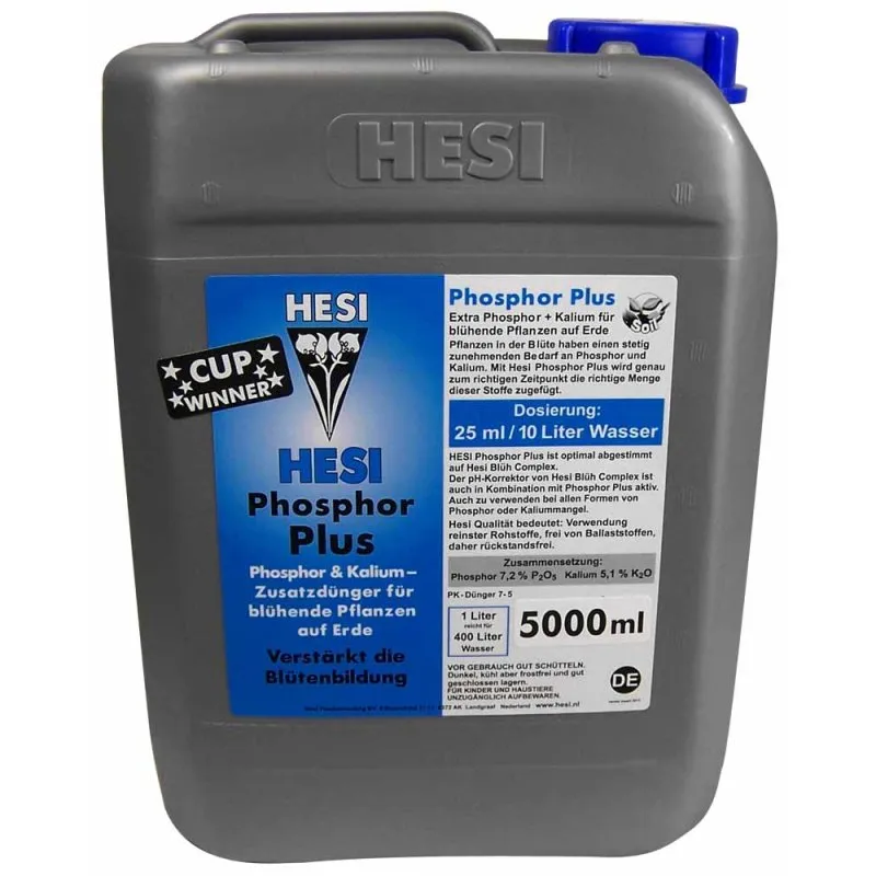 کود Hesi Phosphor Plus، یک کود و محرک گلدهی بسیار با کیفیت مبتنی بر ترکیبات فسفر دار و پتاس داری است که به راحتی توسط ساختمان ریشه گیاه قابلیت جذب دارند.کود Hesi Phosphor Plus ، قابل استفاده در کلیه بستر های کشت اعم از کشت در بستر آبی یا هیدروپونیک و همچنین کشت در بستر خاک و کوکوپیت می باشد و با توجه به این که در طول دوره گلدهی نیاز گیاه به عناصر پر مصرف فسفر و پتاسیم به شدت افزایش پیدا میکند، میتواند نیاز گیاه را به این عناصر به طور کامل مرتفع سازد.