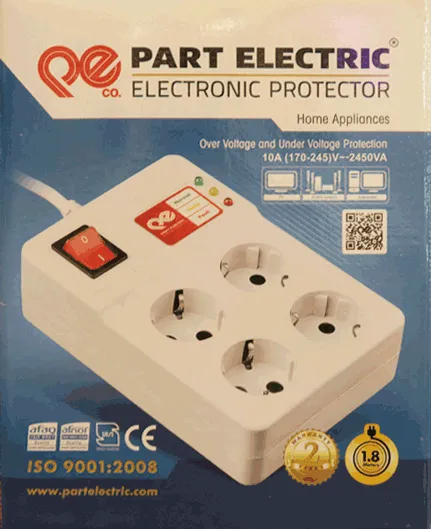 محافظ برق دیجیتال 4 خانه پارت الکتریک محصولی مطابق با استانداردهای CE جهت محافظت از لوازم الکترونیکی در برابر نوسانات ناگهانی برق می باشد. محافظ برق دیجیتال پارت الکتریک مدل PE2204 با فضای کافی بین محل اتصال دو شاخه جهت اتصال 4 دستگاه الکتریکی به صورت همزمان در ابعاد 160* 50* 180 میلی متر طراحی شده است. حداکثر توان خروجی این دستگاه 2450 ولت آمپر می باشد...
