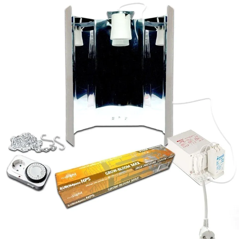ست لامپ رشد گیاه 250 وات دوره رشد و گلدهی پیور لایت | Pure Light 250w SHP Set & Mirror Reflector