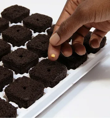 برای کشت بذر، بذرها را در مرکز بستر قرار دهید و سپس بستر را در ظرف کمعمق آب قرار دهید تا جذب آب اتفاق بیفتد. با فراهم شدن شرایط ایدهآل، بذرها در مدت کوتاهی جوانه زده و نشای دو برگی تولید میشود. پس از آماده شدن نشا، میتوانید همراه با بستر به بستر اصلی منتقل کرده و با حداقل آسیب به ریشه، رشد طبیعی گیاه ادامه مییابد.