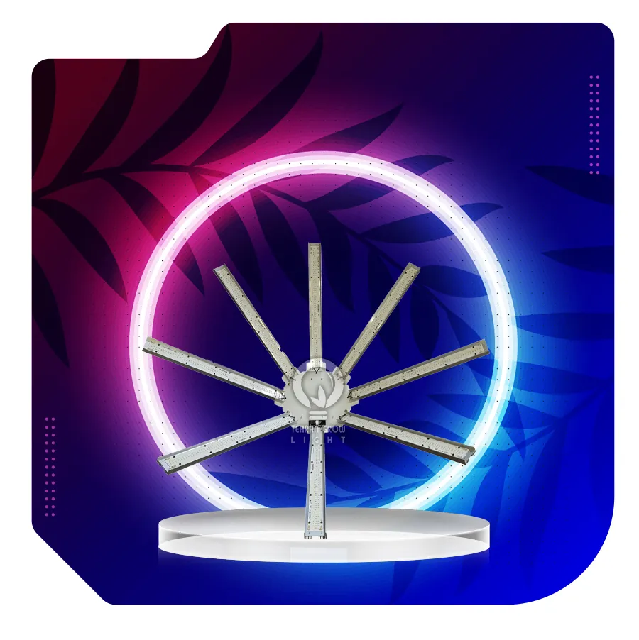 - به دلیل شکل اختاپوسی یا مدل چتر و طراحی زاویه دار، این پروژکتور حداکثر کارایی را داشته و برگ های پایینی گیاه هم نور را دریافت می کنند.