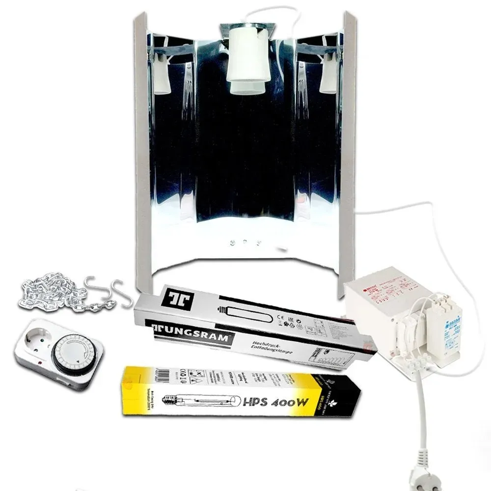مشخصات فنی ست لامپ رشد گیاه 400 وات دوره رشد و دوره گلدهی سکرت جاردین Secret Jardin 400w Grow/Bloom Set & Mirror Reflector