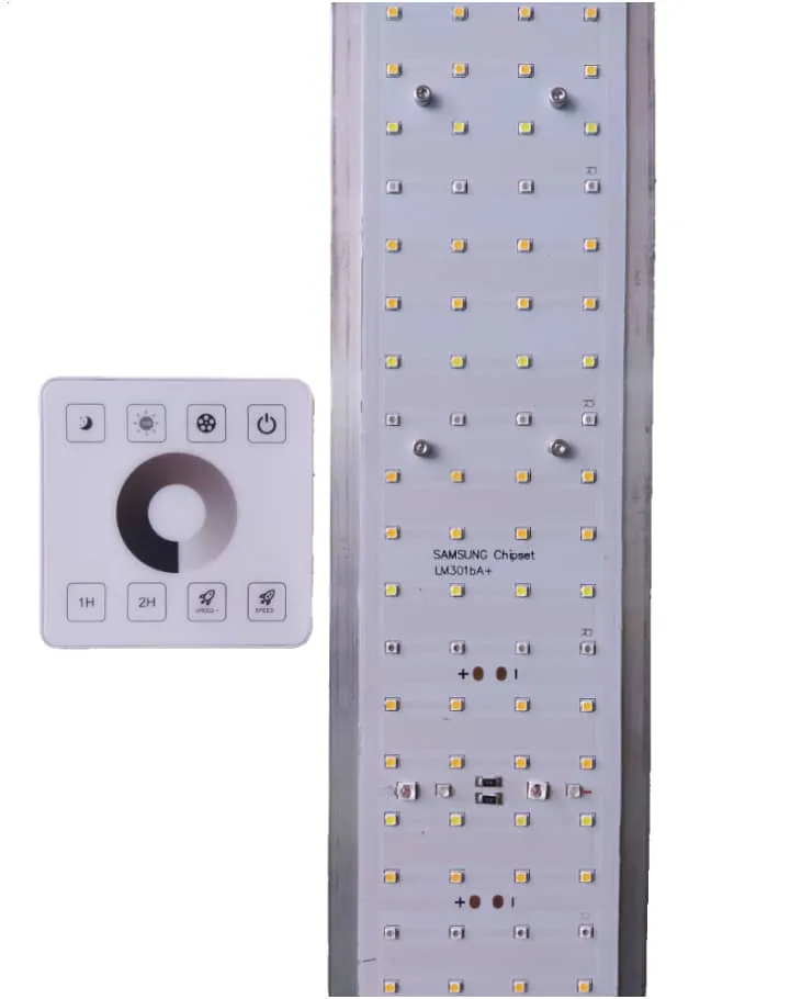 - تجهیزات: ریموت کنترل بیسیم لمسی جهت کنترل میزان شدت نور و خاموش و روشن کردن پنل