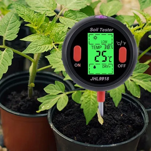 پی اچ متر پنج کاره خاک مدل JHL-9918، یک پی اچ متر قلمی بسیار باکیفیت جدید، ساخت کمپانی yieryi چین می باشد که علاوه بر قابلیت اندازه گیری میزان PH محلول خاک می تواند میزان رطوبت خاک، دمای خاک، نور دریافتی و رطوبت محیط را با دقت بسیار بالا اندازهگیری کند. پی اچ متر پنج کاره خاک مدل JHL-9918، دارای صفحه نمایش بلک لایت دیجیتالی و فونت درشت و خوانا می باشد..